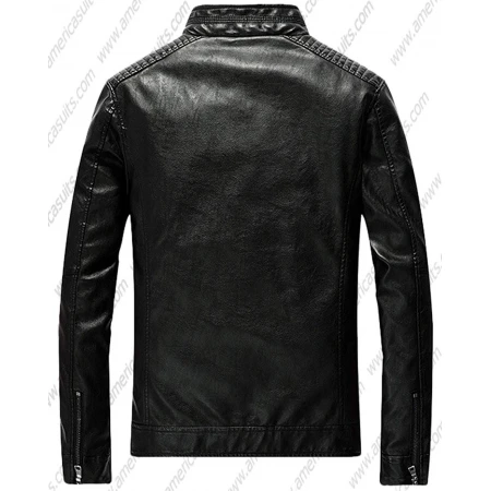 Item Description For Mens Casual Zip Up Slim Bomber Faux Leather Jacket: