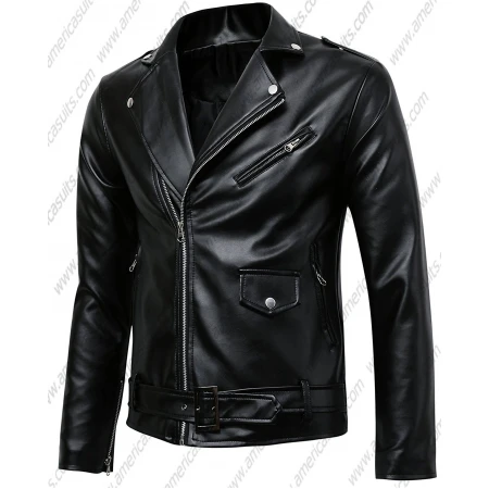 If you like to wear a police-style jacket then this Mens Classic Police Style Faux Leather Motorcycle Jacket is a good choice for you. This motorcycle leather jacket has two slant zipper pockets, one pocket on the chest and turns down collar with buttons. It also has a zipper closure to fits you perfectly. This black leather jacket is made up of premium quality lambskin leather with inside soft viscose lining.
