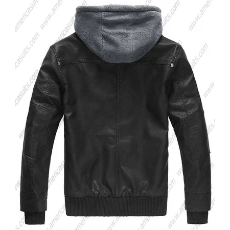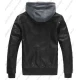Black Leather Jacket With Removable Hood For Men