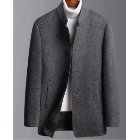 It’s time for the modern gentleman, quiet yet elegantly graceful in dressing, to wear this Men Grey Wool Stand Collar Coat into an astounding collection of refined yet dressed wardrobe. It is meant for people whose lives oscillate seamlessly between the walls of an office, an evening out, or a formal gathering; who want warmth, shape, and elegance without ostentatious display; who want their coats to work for them while enhancing their individual style through concentrating restraint, precision, and comfort.
