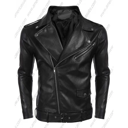 Zipper Biker Jacket Coat is now available in the market; it’s made up of world’s best quality leather. The color of this jacket is black which gives elegant look to the person who wears it. This jacket is in classic style with zipper front closure. As nowadays there so many faked people who tried to copy our product but because of the number one quality of our items, they failed to meet its criteria. To make yourself out of the range of such deceiving brand we suggest you satisfy yourself first and then purchase it. You can also order our products online by visiting our site. The rate of this Men's Zipper Biker Jacket Coat is kept in a range that can be easily accessed by all. This awesome coat is very comfortable extraordinarily attractive. If you have the desire to increase your fame among your fellows and or wish to dominate any event through your handsome charming personality then use this jacket. This outfitter would not only enhance the temptation effect of your persona but also make you admirable among all. The designs that are crafted on this jacket are so perfect which gives this apparels unique and fashionable look.