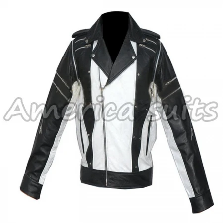 This is a facsimile suit worn by famous rock star MICHAEL JACKSON in his famous video ''PEPSI ADVERTISEMENT''. Special attention has been paid to details of this replica motorcycle suit to look like as original. Its an exclusive suit which gives you an eye catching look with features of open cross zip in front, two open pockets on waist length, inner pockets. Several zips on jacket are making an awesome style with quality clothing. Heavy duty YKK zip and Italian glazed Napa Leather 100% genuine leather are used.
