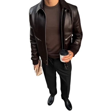 TheMinimalist Dark Brown Leather Bomber Jacket for Men is designed with a minimalist approach that fits the daily needs of men who possess quiet confidence and timeless style. The outfit works well for business professionals, creative artists, and modern gentlemen who choose sophisticated basic items instead of flashy fashion trends. The way it can be worn with a crisp shirt to work or with denim jeans on the weekend, it is a comfortable, structured, and effortless personal expression.