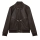 Dark Brown Leather Zipper Jacket with Shirt Collar