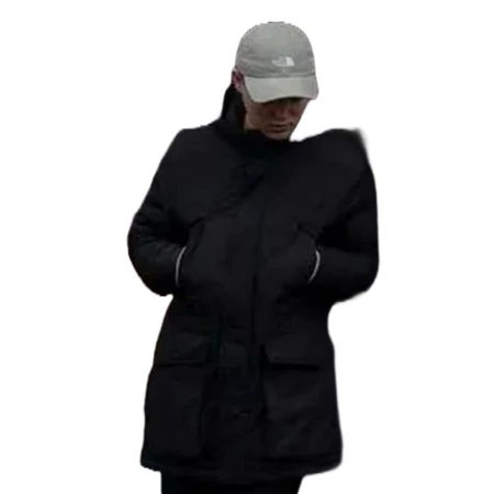 Functional Elements: Designed with six practical pockets and a well-structured fit due to full-length sleeves, the jacket merges style with functionality, offering both ample storage and a flattering silhouette.