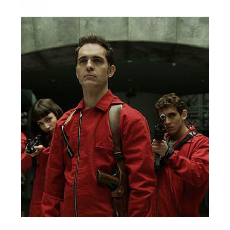 In this serial, you have seen both males and female artists wear that hoodie. This comfy upper is crafted with the best quality fleece fabric along with the inner lining which is meant for comfort. Money Heist (2017-21) La Casa De Papel Red Hoodie is available in red color, depicting a charismatic appearance. With two side pockets and knitted cuffs, a hooded collar suits well. Moreover, the mask on the backside of the hoodie with imprinted characters’ names makes this outfit the best choice for fans.