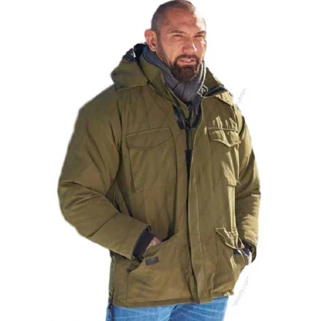 Mr Hinx Spectre Dave Bautista Jacket is made of cotton material which is suitable to wear in the normal winter season to have a soothing experience. It has a buttoned hooded collar which looks stylish and modish to give the latest fashion look. It has a front zipper closure which provides a comfortable closure to wrap your body in it so that you can save yourself from cold weather.
