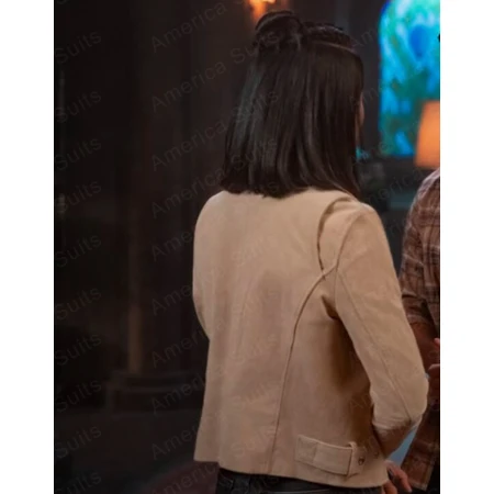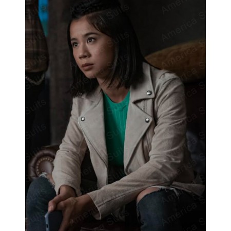 Nancy Drew S04 Leah Lewis White Suede Biker Jacket