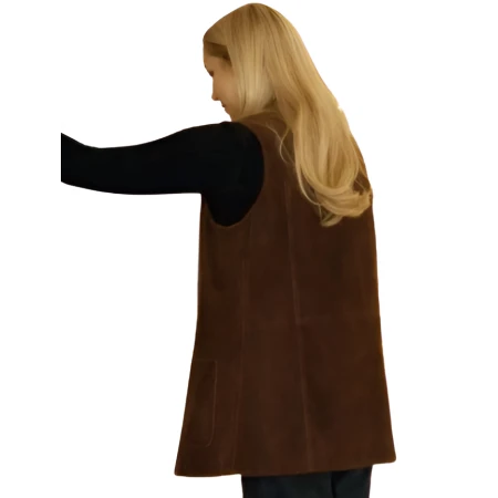 The outside is made of suede leather, which has a natural and smooth finish. The warm effect of the brown color will not overwhelm an outfit. The interior features a viscose lining that provides easy movement and comfort throughout the day. The front button makes it easy to wear and secure, but gives the silhouette a clean and balanced look. This vest fits over shirts, knits, and dresses, and it perfectly fits in changing seasons, and makes it easy to adapt.