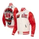 This varsity jacket is a Super Bowl LIX-inspired jacket made of high-quality satin material that gives it a fine, smooth touch. The interior features a gentle lining for all-day comfort. The collar and cuffs of it are rib-knitted to give a clean look that fits well against the body, making it easy to move in.