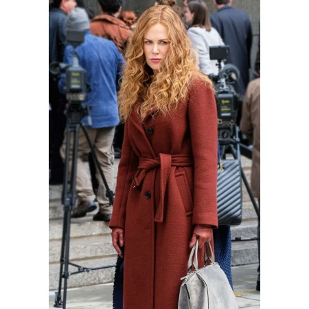 At America Suits, The Undoing Coat is available in a maroon color that is the favorite color of almost every other woman. A wool blend is used as an exterior material, meanwhile, the interior side is lined up with viscose material. Both will allow you to feel the real joy of the winter season without any hesitation. For an amazing look, a small lapel collar featured with the front button closing. An adjustable belt that is wrapped around the waist makes it easy to adjust the size. The edges of Nicole Kidman Coat are trimmed finely. Long sleeves contain open hem cuffs. The inner and outer pockets of the apparel include two side waist pockets and two inner pockets. It has the ability to easily catch everyone's attention! Are you also one of them? Then make it yours by dropping an order!