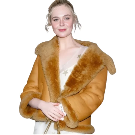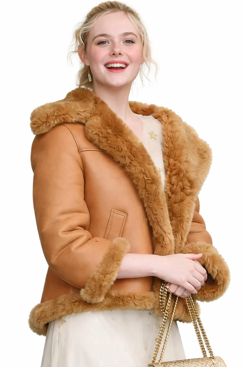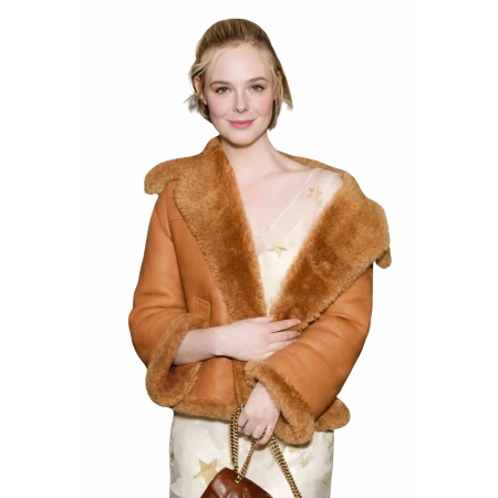 It draws its inspiration from Elle Fanning, and is made using genuine leather. It is lined with viscose fabric for added comfort throughout the day. The fur collar gives a warming touch to this jacket.