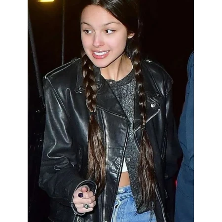 Channel Olivia Rodrigo's effortlessly cool vibe with this chic Biker Leather Jacket. Olivia Rodrigo is an American singer, songwriter, and actress. In 2021, Rodrigo released her debut single, “Drivers License” which quickly rose to the top of the Billboard Top 100, making her the youngest person to ever top that chart. Famous for starring in High School Musical: The Musical: The Series.” Inspired by her signature style, the Olivia Rodrigo biker jacket embodies the youthful rebellion and trendsetting fashion that Olivia is known for, making it a perfect choice for fans and fashionistas alike. This Olivia Rodrigo Biker leather jacket is crafted from high-quality full-grain leather and offers durability with aesthetics. Soft leather ensures a comfortable fit and is ideal for everyday use or special occasions. Moreover, this leather jacket highlights punk rock chic, featuring classic biker details like five spacious pockets: three on the outside and two on the inside. A notch lapel style collar is an adjustable waist belt, and full-length sleeves have YKK zipper cuffs and asymmetrical front zipper closure. The jacket's bold black color provides a glamorous look. It's perfect for making a statement at concerts, parties, or a day out. Save on different sizes with discounts.
