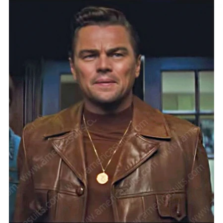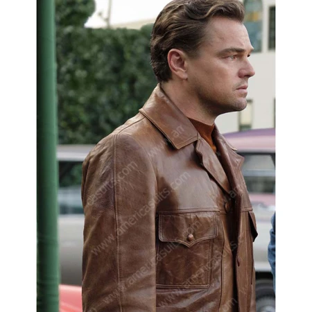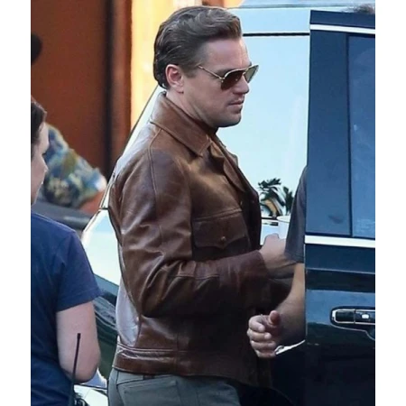 As the time passes, we become more aware of the adjustment in our surroundings and get the idea how things stack up. This fashion of metamorphosis can be both positive and negative thought positive one is always appreciated and followed. Generally, people get bored when things are presented in the same manner for a longer period of times whereas alternatively change give them excitement and pleasure. Now the main point is what means one can grasp to explicit change in their lives? The answer is very lucid; people can start this reliably by remodeling dressing patterns. Therefore, it is time to get up and go for some voguish possessions that not only advances the looks yet upgrades the personality of the customer. For this try, our alluring Leonardo DiCaprio Leather Jacket crafted with high-class material made to give the consumer comfortable feelings with the spectacular look. This jacket is influenced by the movie Once Upon A Time in Hollywood in which actor Leonardo DiCaprio worn this leather jacket. Genuine leather is used in the manufacturing of this Once Upon A Time in Hollywood Rick Dalton Jacket with viscose lining. This brown leather jacket pops in notch collar and full sleeves with open hem cuffs that will absolutely give you the iconic appearance. Its front is designed from buttoned closure for your convenience, now available in brown color.