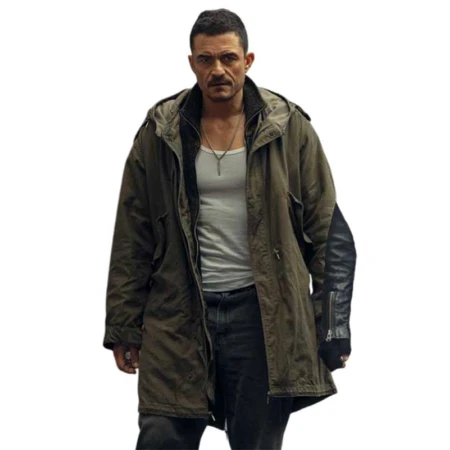 Movie Deep Cover 2025 Orlando Bloom Beige Hooded Coat