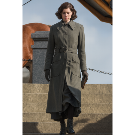 It is truly a masterpiece inspired by the beloved series Outlander, immortalized in the name of the coat: Outlander Blood of My Blood Hermione Corfield Coat. Here is the ideal gray coat for the fan of vintage charm with a blend of modern wearability. It's a magnificent coat, fit for anyone who's a true fan of the series and who loves vintage-style outerwear.