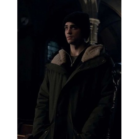 The green color is chosen for this jacket so that it can serve the purpose of versatile fashion. Moreover, a hooded collar is given so that the jacket will keep you warm on winter days. A zipper and buttoned closure is also placed on the front part of this Green Jacket. The hooded collar is made with shearlings on the inner side.