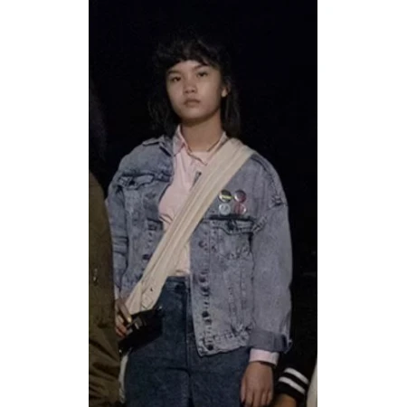 Erin Tieng wears Paper Girls Erin Tieng Denim Jacket which attracts viewers while an adventurous shot has been shooted. 30-issue comic book series Paper Girls written by Brian K. Vaughn and Cliff Chiang. Four newspaper delivery girls were stuck in the long-running war between some time-traveling groups. an 80's classic adventure movie element is included in it—kids riding bikes around town. The unique style of Paper Girls Riley Lai Nelet Blue Denim Jacket will appeal to their viewers. This comic series is affiliated in an extremely strange and interesting direction.