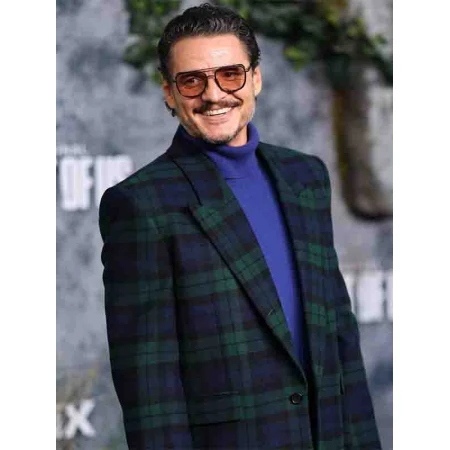 This blazer doesn't just replicate a celebrity outfit—it captures the essence of Pedro Pascal's bold fashion sense. The checkered design nods to traditional menswear while injecting a modern, standout appeal. It’s tailored to perfection for those who appreciate fashion that speaks volumes.