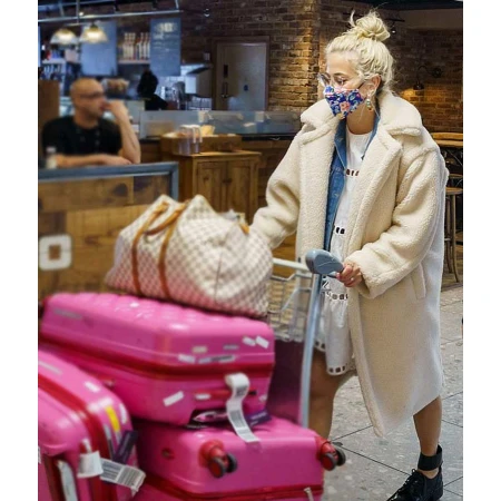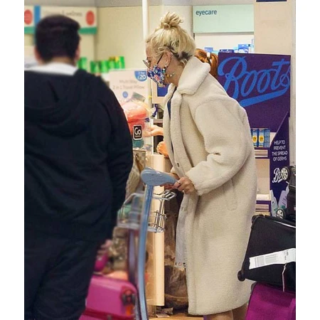 Pixie Lott White Shearling Teddy Bear Long Coat