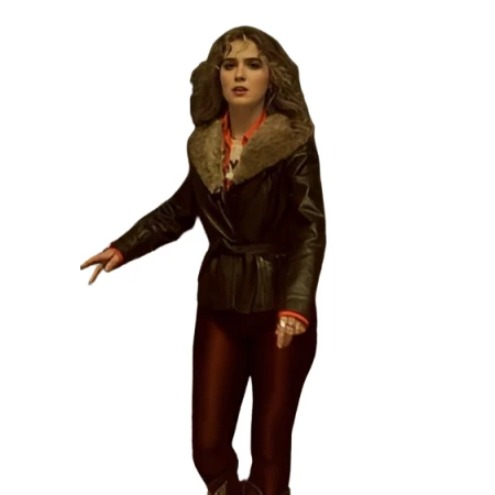 - Collar: Wide Brown Faux Fur Collar