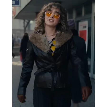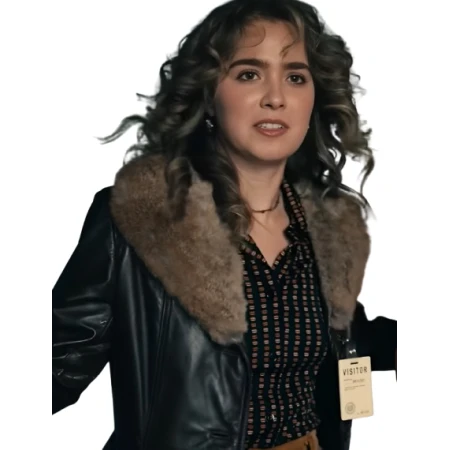 This black leather coat, which was inspired by Ponies 2026 as Twila and was worn by Haley Lu Richardson, is all about restraint and elegance. It's made for those who prefer timeless pieces over passing trends.