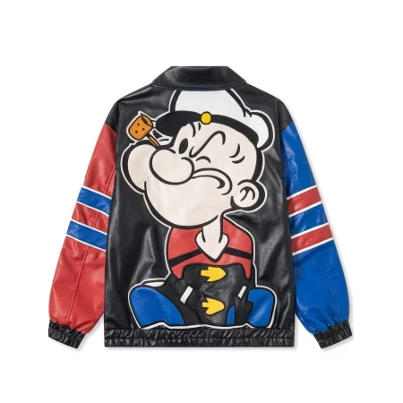 Cartoon Popeye Black Bomber Jacket