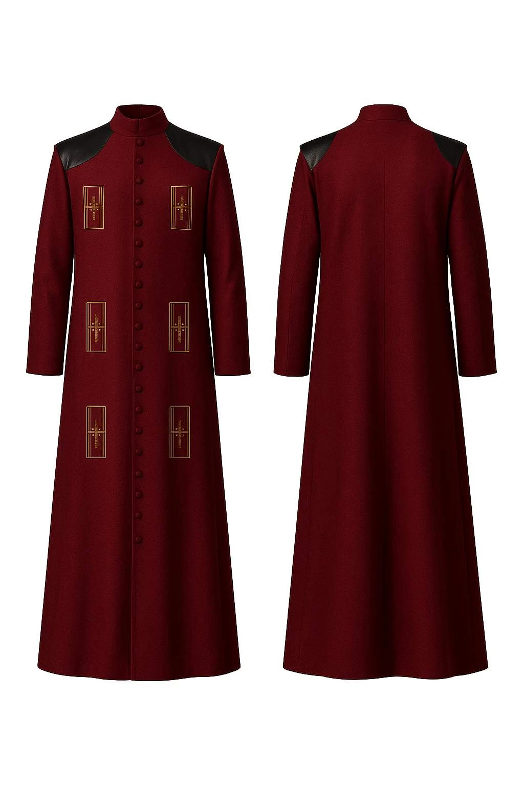 The costume comprises pure wool fabric providing natural warmth and a composed silhouette that's offset by a layer of smooth inner lining to afford movement and all-day wear comfort. The colour maroon adds depth and distinction that lends itself both to evening and to refined character styling. A stand-up collar frames the neck with restraint, while the button front closure with embroidered panels reflects thoughtful detailing rooted in heritage design.