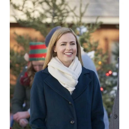 An appealing navy blue color Project Christmas Wish Lucy Coat, that you are seeing here, taken from Project Christmas Wish movie. The movie is directed by Jeff Beesley and released recently in December 2020. It stars Amanda Schull, Travis Van Winkle, and Averie Peters.