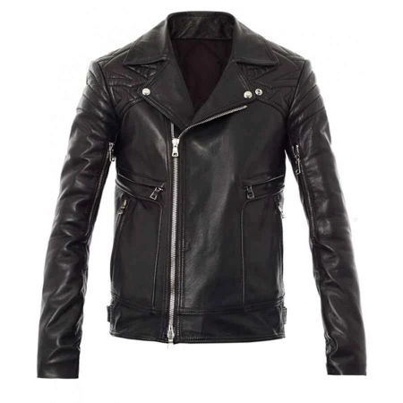 Quilted Men's Black Leather Biker Jacket