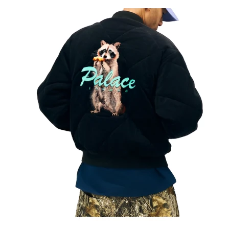 Black Bomber Jacket With Raccoon Graphic