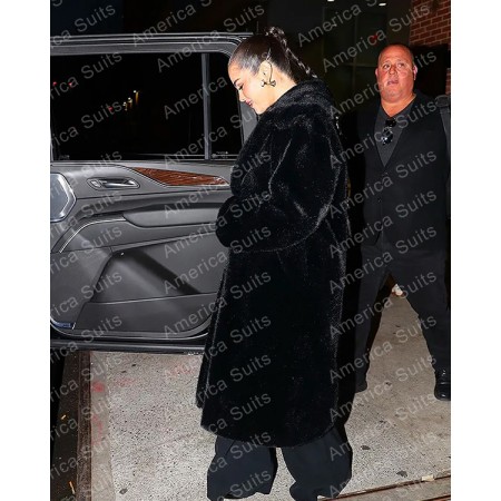 Selena Gomez Black Faux Fur Black Coat