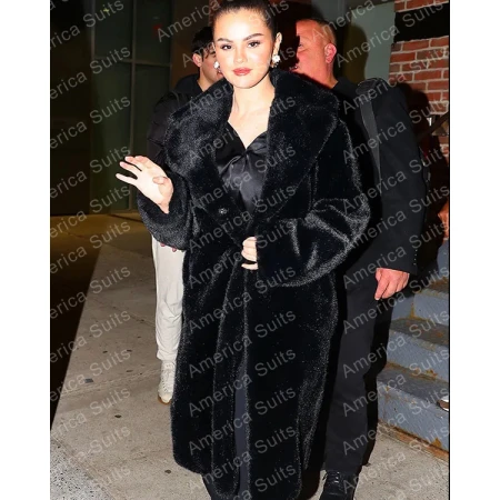Selena Gomez Black Faux Fur Black Coat
