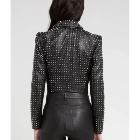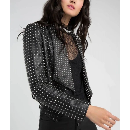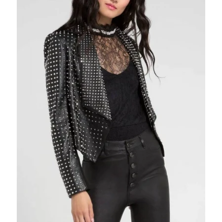 Rhobh Kyle Richards Studded Black Leather Open Front Blazer