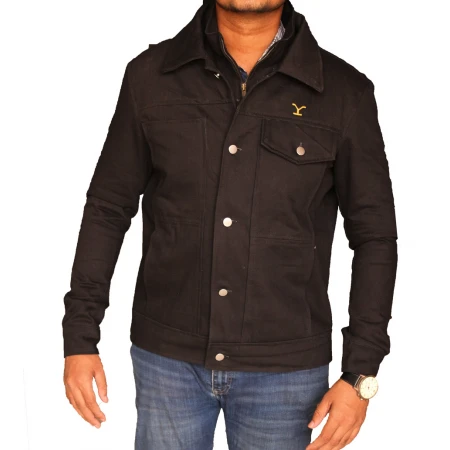 The Rip Wheeler Yellowstone Jacket is the black denim layer fans know as the Rip Jacket—built to look clean, feel solid, and handle daily wear. You get a tough outer shell in deep black denim with a smooth lining inside, so it holds shape but never feels rigid. Front buttons keep the style classic, the shirt-style collar gives a neat edge, and the chest plus hand pockets are there for actual use, not decoration. No shiny extras, no fuss—just a dependable Western-inspired jacket that slips into real life with ease.