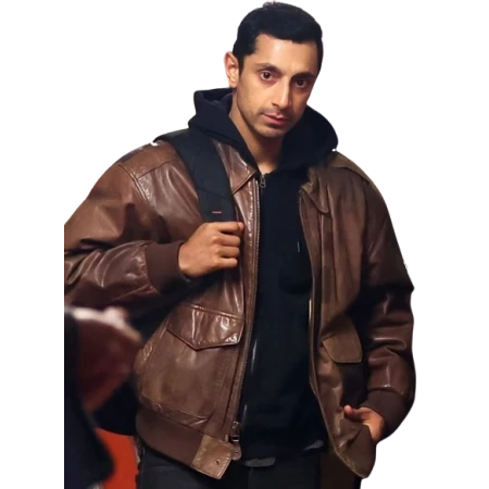 Tom Relay Movie Riz Ahmed Brown Leather Jacket