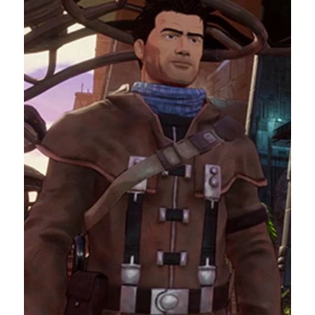 This is a premium quality faux leather made attire along with a relaxing viscose lining on the inner side, to give you a smooth touch all day. Beyond A Steel Sky Coat has an orange color piping on the edges that not only increase durability but also looks amazing. Instead of any broad collar, a casual wear v shaped neckline is designed. A zipper closing front side tied more perfectly with the help of a belt fastening feature. Long length sleeves present with open hem style cuffs. When it comes to the pockets, the Robert Foster Jacket, includes two outer side pockets and two inner stitched pockets. It comes in a military brown color, so don't wait anymore, grab it soon!