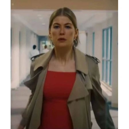 - Experience the allure of Rosamund Pike's character with this exceptional coat.