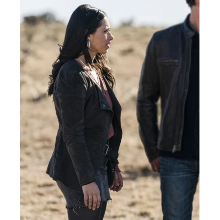 The fictional character Liz Ortecho of the series Roswell, New Mexico series, who is a jaded biomedical researcher, wore Roswell, New Mexico Liz Ortecho Black Jacket. She is the daughter of undocumented immigrants. Jeanine Mason beautifully played this character. Roswell, New Mexico is a science fiction drama television series that is developed by Carina Adly Mackenzie for The CW. The name of the series is named after the city of Roswell, New Mexico.