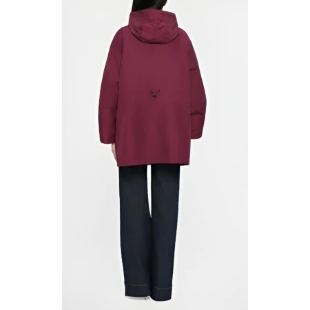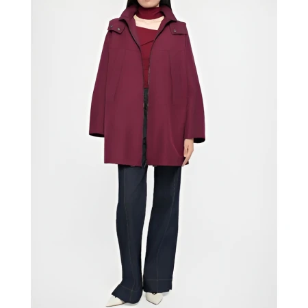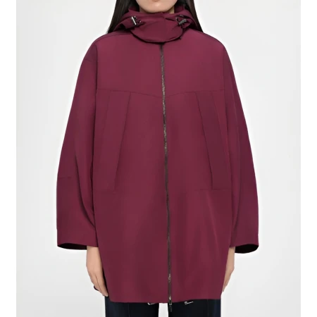 This cotton jacket is ideal for Spring/Autumn or transitional weather, thus giving it natural breathability. Inside, the viscose lining lends the necessary smoothness and allows the garment to drape over everyday layering easily. It has a practically full-length zipper closure, wherever worn fastened or otherwise, with h stand collar and detachable hood, lending versatility without being too obtrusive on the clean lines. The deep burgundy color adds warmth and understated appeal to the modern wardrobe.