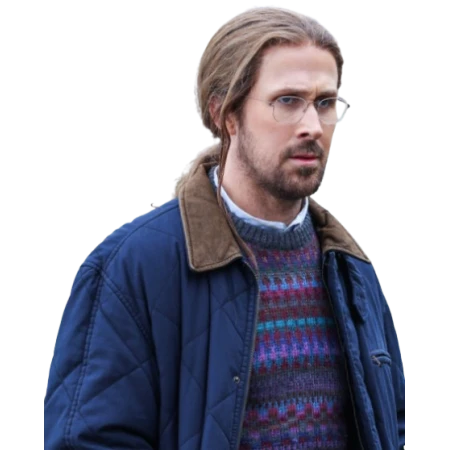 Buy now at America Suits and acquire comedy and style history with the Ryan Gosling SNL Papyrus 2 Blue Quilted Jacket, as fashion can be legendary and funny.