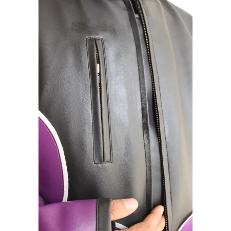Do you want to miss a chance to look different from others? Obviously not, because no one wants to miss it. So get your hands on our newly introduced Saints Row Johnny Gat Leather Jacket. Belongs to the lead character Johnny Gat of Saints Row, an action-adventure video game series. The black color looks more appealing with the bright purple color design present on the front side. The outstanding style of the Saints Row Jacket that is seen in the picture is courtesy of high-quality leather. Full sleeves have decent open hem cuffs. The front zipper closing and small stand-up style collar, both are designed for some handsome appearance, in the exact same way. Instead of ordinary waist side pockets, only one vertical zipper pocket, is present on the chest side. To allow you to wear it without any hesitation, there is a viscose material embedded on the inner side. Please make sure to select the exact size according to the body size to avoid unnecessary refunds.