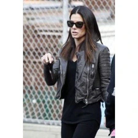 Sandra Bullock Black Edgy Biker Jacket