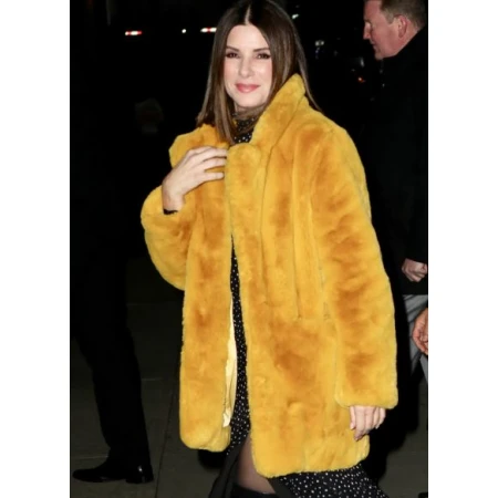 Sandra Bullock Yellow Fur Coat