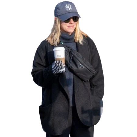 The key feature that accents the coat is its front open closure. With its relaxed fit, lapel collar, chic, and lots of play and layering room for other dress pieces, tall boots, and accessories add to its allure even further to charm. Black, dark, and glistening, it is a sexy number to be reckoned with that can be worn all year round. Detailing sets it apart, giving that European-polished feel we instantly associate with Johansson, yet she embraces the latest Eleanor the Great 2025 vibe.