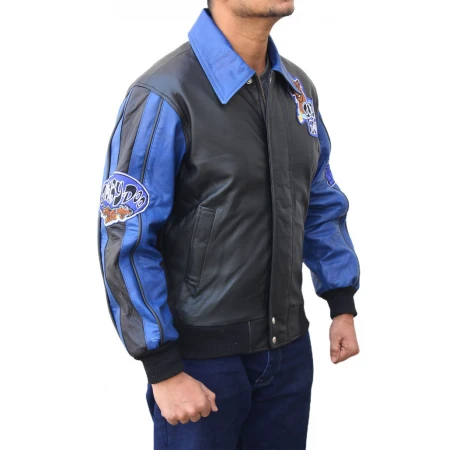 Americasuits.com is bringing Scooby-Doo Leather Jacket for all the persons who are looking for some catchy apparel. Scooby-Doo Leather Jacket is one of the most selling outfits of the year because of its different design. A back patch of the leather jacket which has texting of Scooby-Doo. Front and both sleeves also have attractive patches. We use a black rib on both sleeves and hemline for perfect slim fitting. The combination of blue and black is very eye-pleasing. And collar of the Scooby-Doo jacket has a classic shirt style blue color collar. Avail this wonderful outfit from americasuits.com.