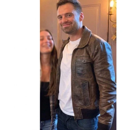 The distressed brown color looks totally different from the ordinary brown colors, replicated by using the PU leather material from the exterior side. And the inner side is finely covered with the viscose lining that will keep you warm and comfortable. This Sebastian Stan Bomber Jacket has rib knitted cuffs in black color at the end of full length sleeves. Two chest flaps and two waist welted pockets are beneficial for securing the valuables safely. The front side is embellished with a zipper closing feature, fixed up to the level of a shirt style collar.