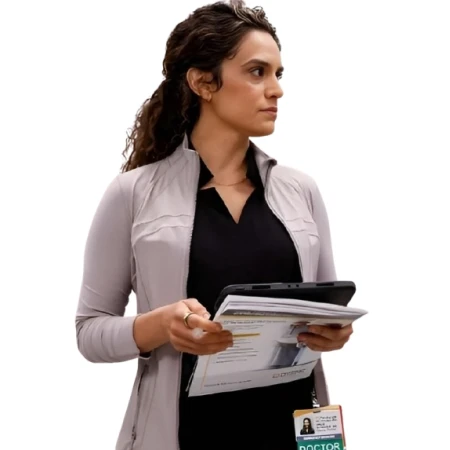 The Pitt Grey Fleece Jacket is for women who prefer an understated confidence and thoughtful dressing styles. The fleece jacket is inspired by Sepideh Moafi as Dr Al Hashimi in The Pitt, designed to be worn every day, where ease of wear, demeanor, and self-expression are essential. It merges seamlessly with everything that forms the fabric of daily life, vaguely slinging it over work clothes, through cool evenings, or styling for a quiet poise. Yet the jacket affirms comfort in movement, warmth, and refinement.