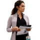 Long sleeves give ample coverage but allow unrestricted movement. The neutral, timeless color of gray will allow the jacket to work with either a completely neutral wardrobe or with one having modern accents. Two outer pockets and one inner pocket offer room for practical storage without disrupting the smooth silhouette.