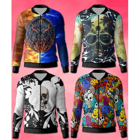 Look no further than this Set of 4 bomber jackets! Crafted from soft fleece and designed with full-length sleeves and rib/knit cuffs, these jackets are designed to make you stand out in a crowd. With two waist pockets for convenience and a unique full-printed design, these bomber jackets are perfect for making a statement.